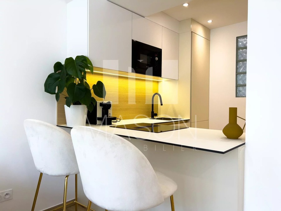 Cet appartement climatisé dispose d'un séjour spacieux, d'une cuisine sur-mesure entièrement équipée, d'un espace nuit isolé au calme, et d'une salle d'eau.