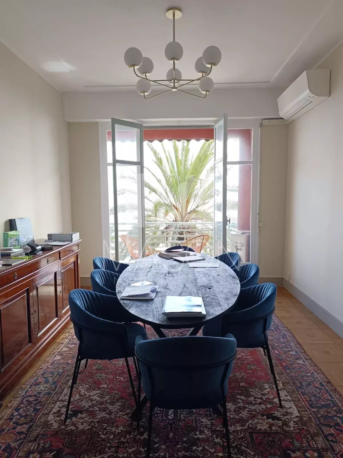 Sur la Promenade des Anglais, en centre ville, venez découvrir ce beau 3 pièces transformable en 4 pièces qui se compose d'une entrée, un double salon, une cuisine séparée et équipée, une salle d'eau avec wc et une salle de bains avec wc, deux chambres et une magnifique terrasse vue mer.