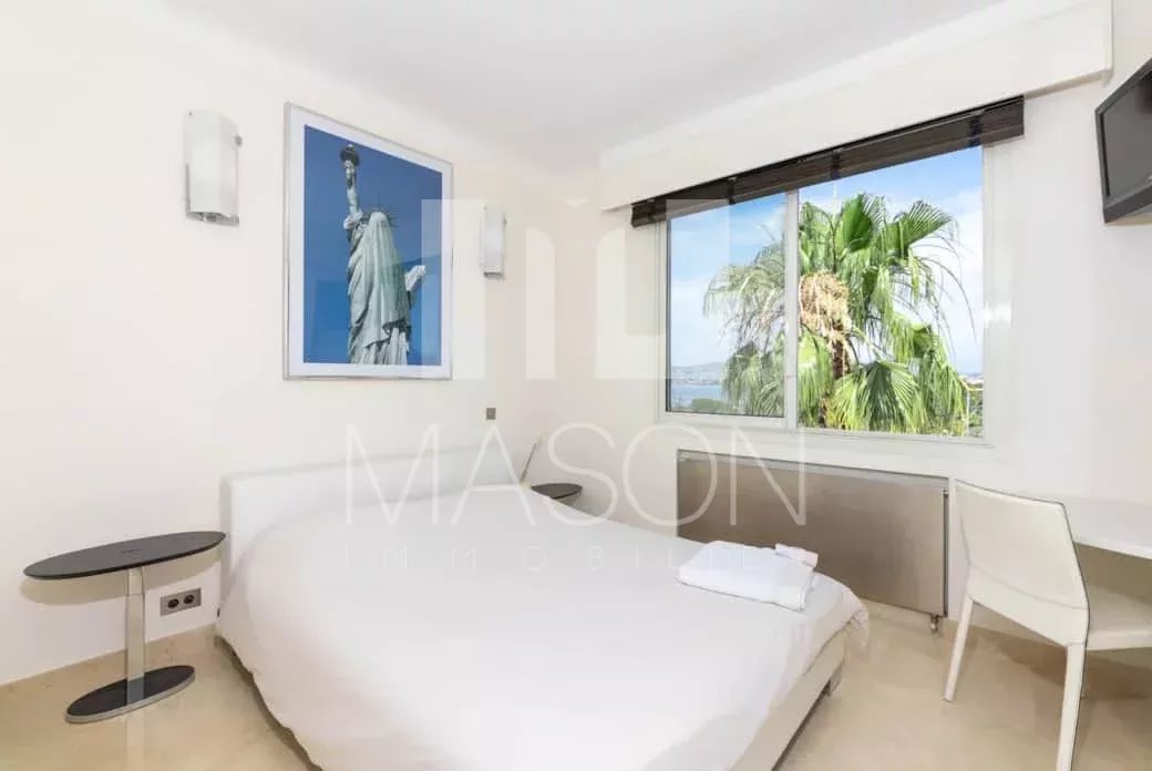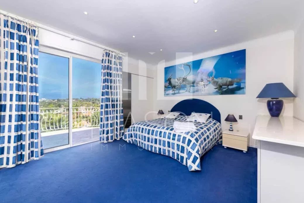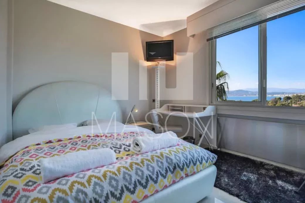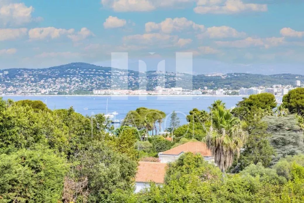 Vue mer panoramique sur les iles de Lérins et le massif de l'Estérel. Exposition Sud-Ouest.