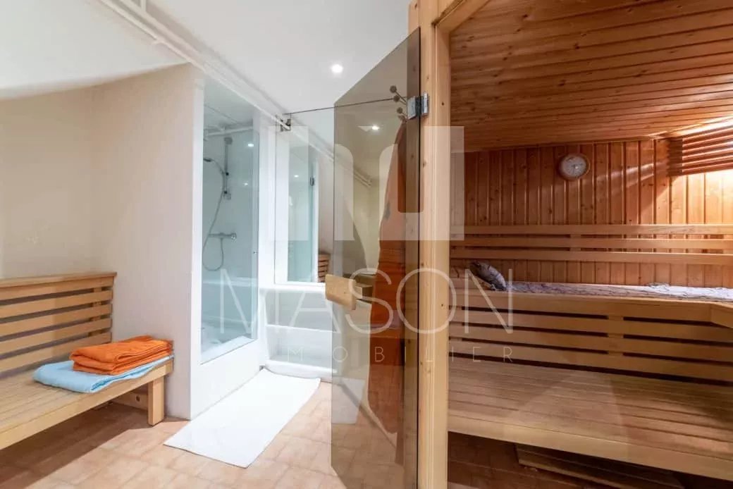 Accès à la piscine chauffée via le rez-de-chaussée ou la terrasse du rez-de-chaussée.