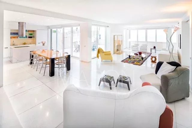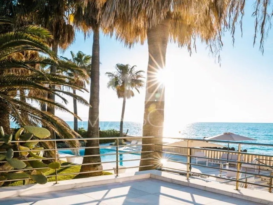 Plusiers terrasses sur la mer, piscine, parkings privès et acces direct à la plage.