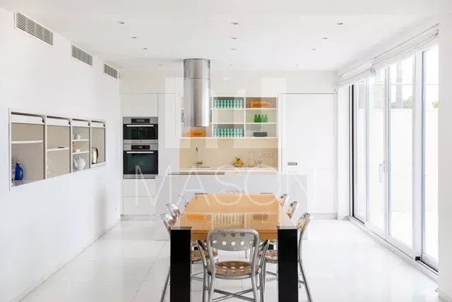 Situé dans le quartier du Cap d'Antibes, à proximité de l'église Notre-Dame de la Garoupe, cette magnifique villa e Villa Pied Dans L'eau est decorée en style bateau.