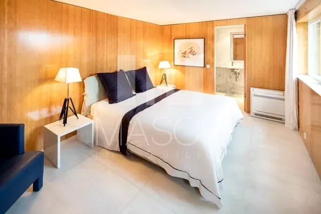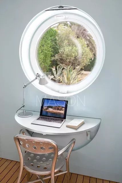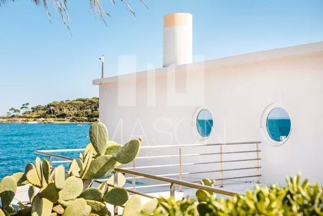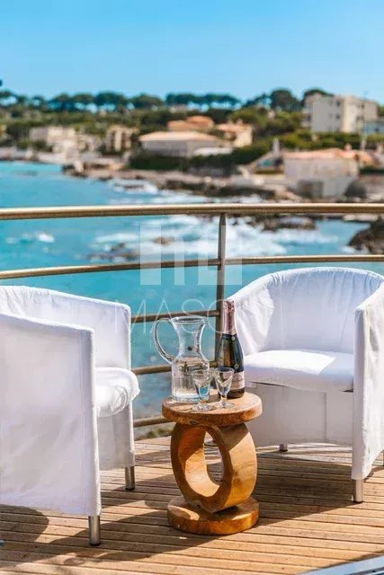 Located in the Cap d'Antibes neighborhood, near the Notre-Dame de la Garoupe church, this magnificent seaside villa is decorated in a boat style.