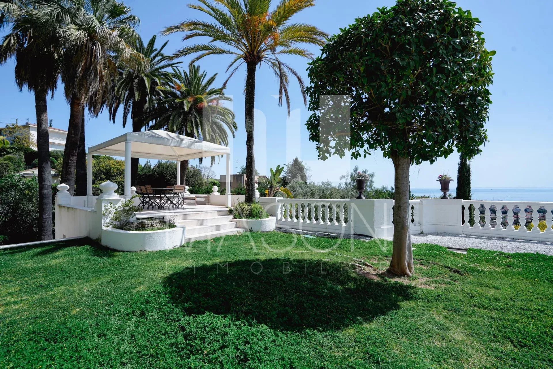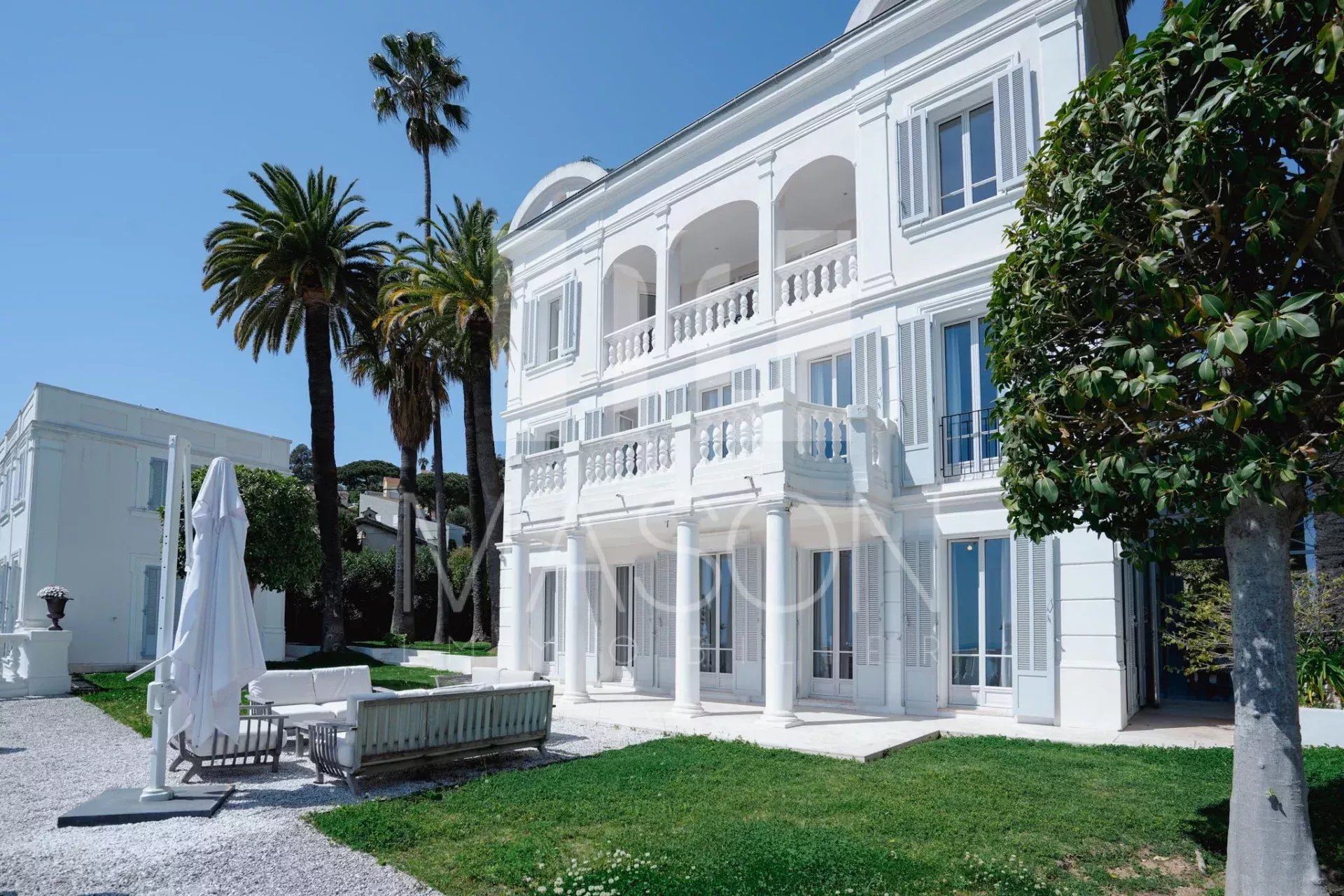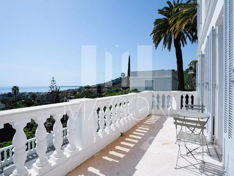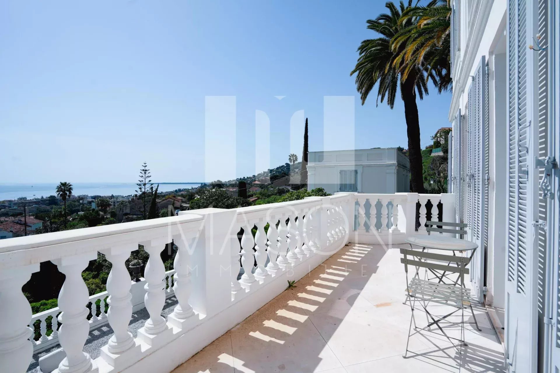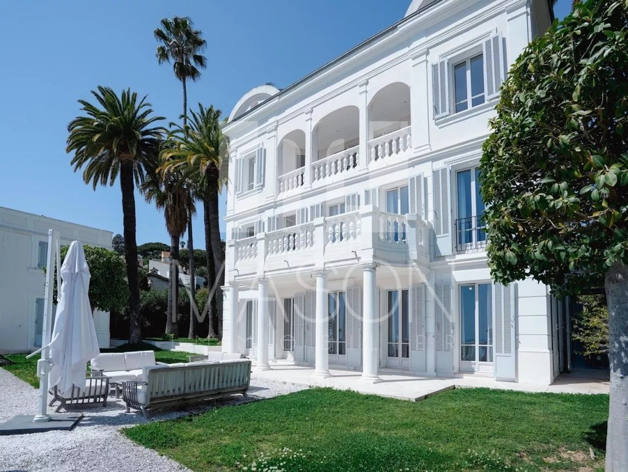 Exceptionnelle Villa Belle Epoque, tout juste rénovée avec des finitions du plus haut niveau. La Villa Reale est située à Golf Juan entre Cannes et le Cap d'Antibes. Depuis ses 7 suites vous pourrez profiter d'une magnifique vue sur la mer grâce à son exposition plein sud. La maison principale de 4 étages avec ascenseur offre un grand séjour ouvrant sur la terrasse panoramique extérieure et une cuisine moderne ainsi qu'une salle à manger dans la belle véranda. Aux deux premiers étages se trouvent 4 chambres avec leur propre salle de bain et au troisième étage une grande chambre avec deux lits doubles et une salle de bain. A l'extérieur, un jardin en restanques avec une grande piscine chauffée et un parking intérieur pour au moins 6 voitures.
