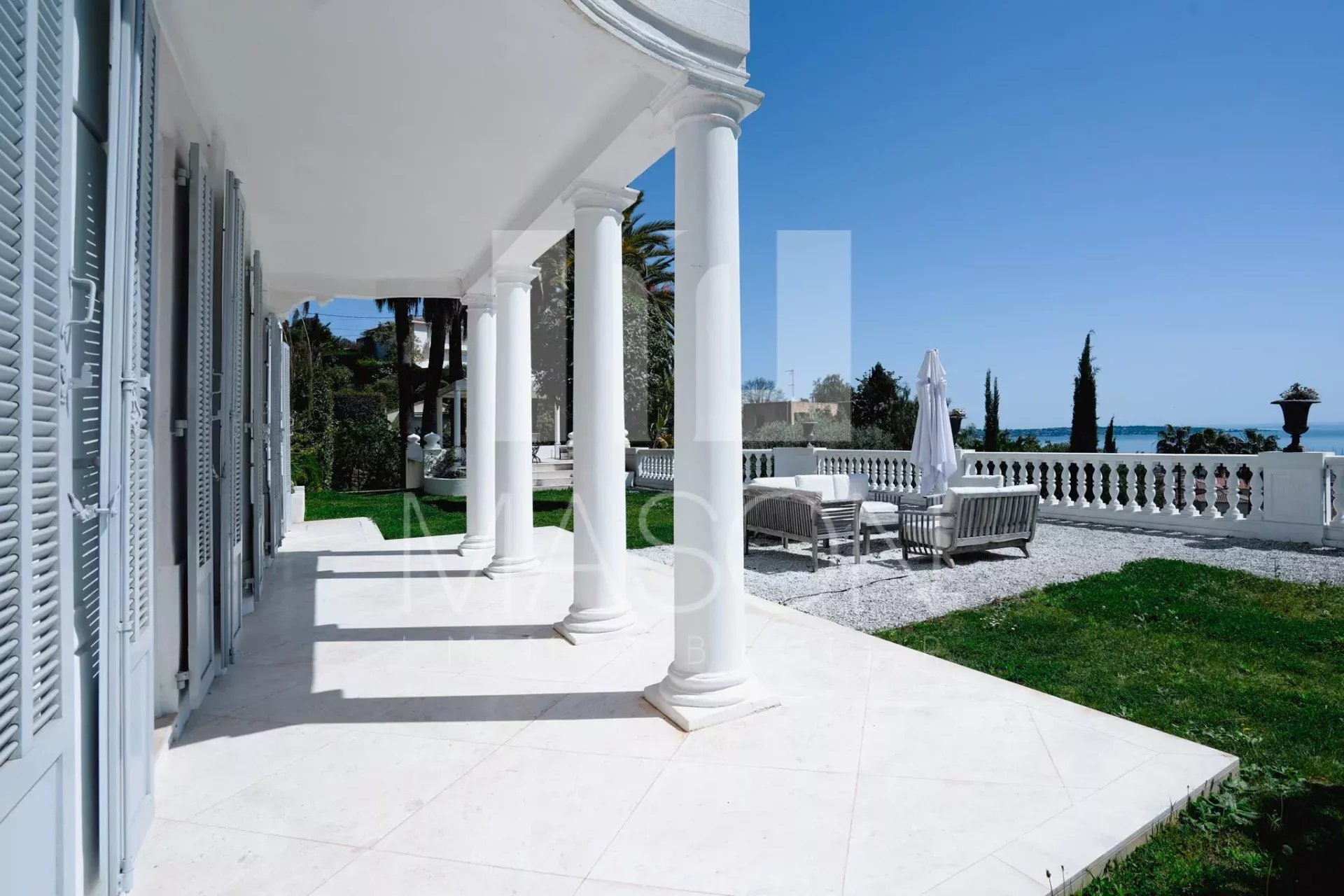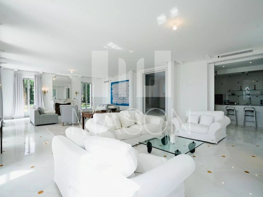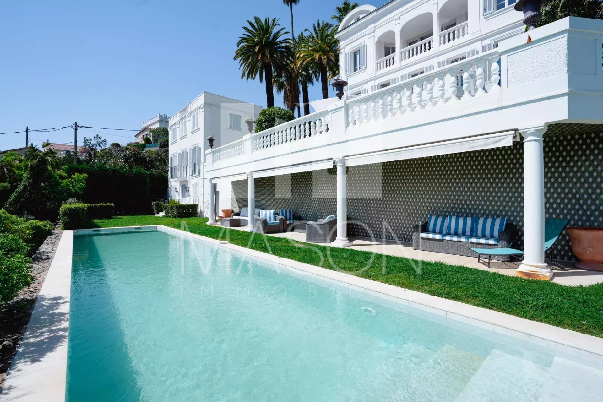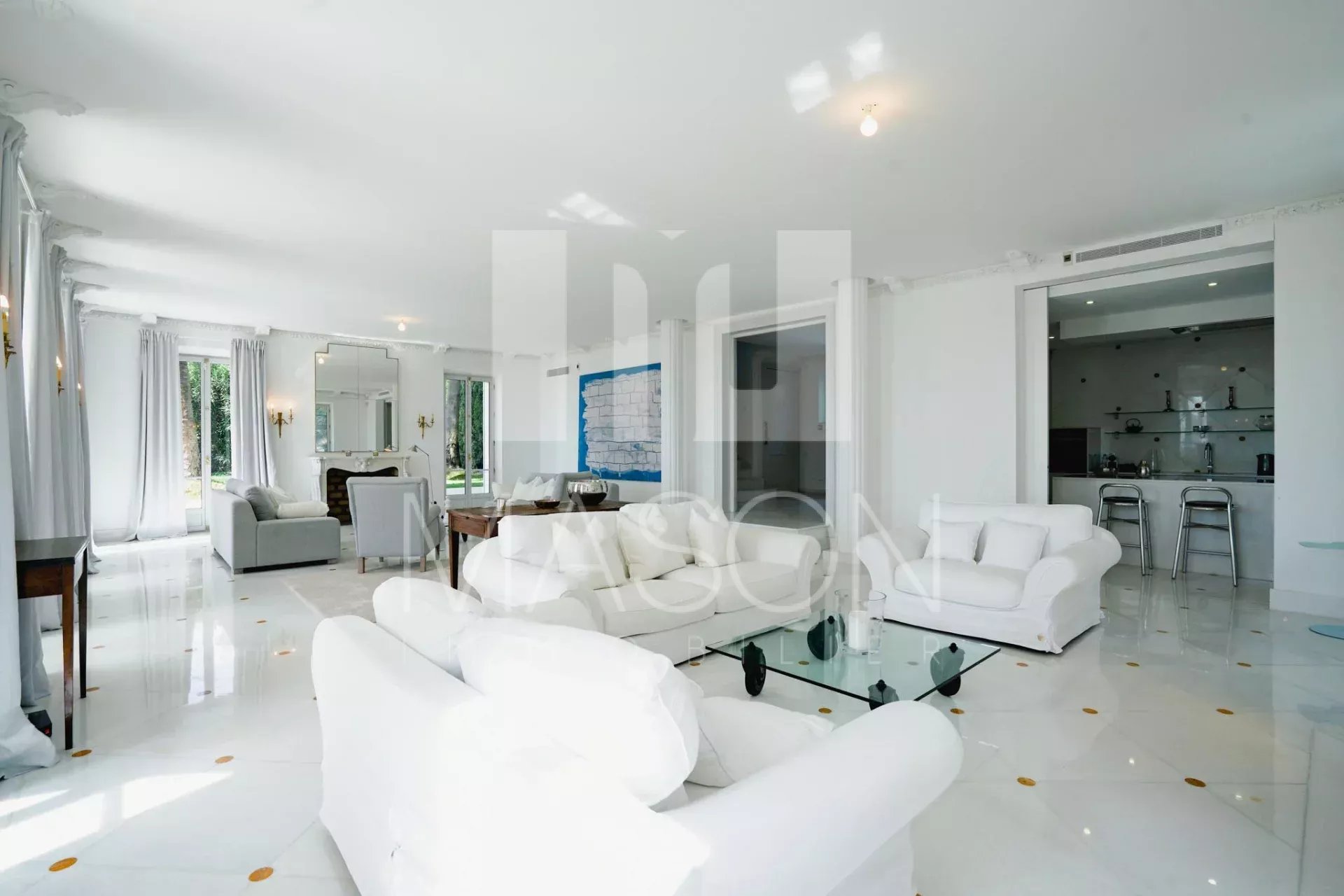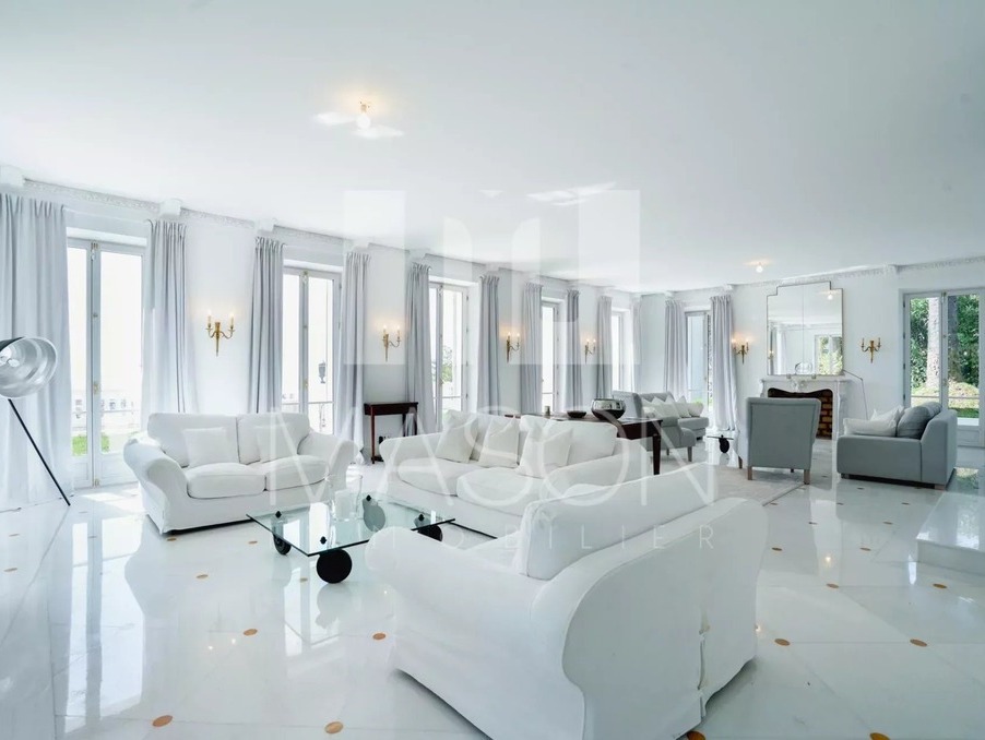 Exceptionnelle Villa Belle Epoque, tout juste rénovée avec des finitions du plus haut niveau. La Villa Reale est située à Golf Juan entre Cannes et le Cap d'Antibes. Depuis ses 7 suites vous pourrez profiter d'une magnifique vue sur la mer grâce à son exposition plein sud. La maison principale de 4 étages avec ascenseur offre un grand séjour ouvrant sur la terrasse panoramique extérieure et une cuisine moderne ainsi qu'une salle à manger dans la belle véranda. Aux deux premiers étages se trouvent 4 chambres avec leur propre salle de bain et au troisième étage une grande chambre avec deux lits doubles et une salle de bain. A l'extérieur, un jardin en restanques avec une grande piscine chauffée et un parking intérieur pour au moins 6 voitures.