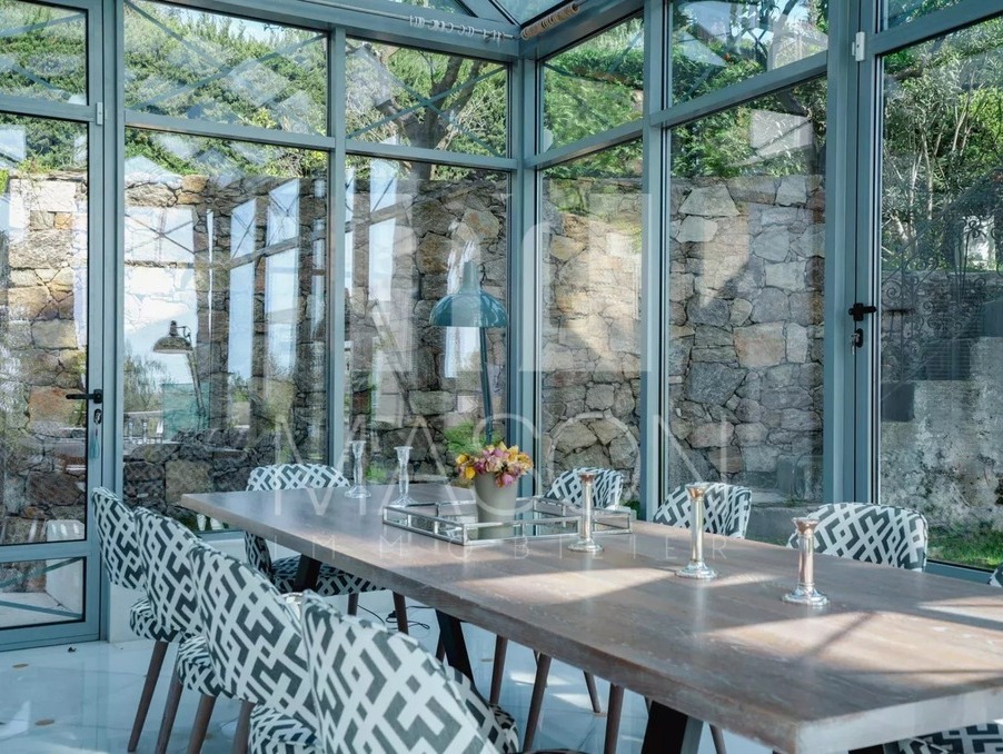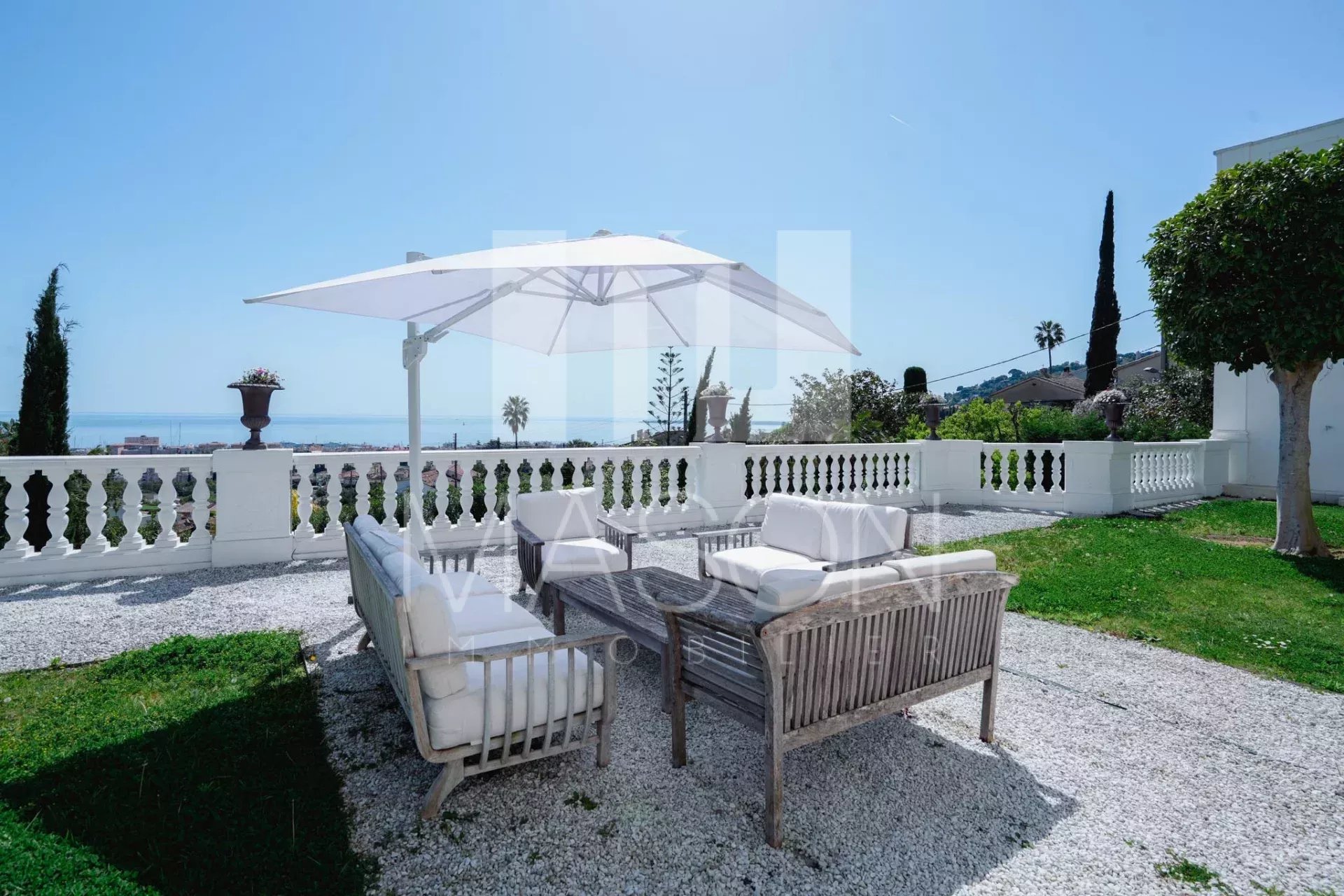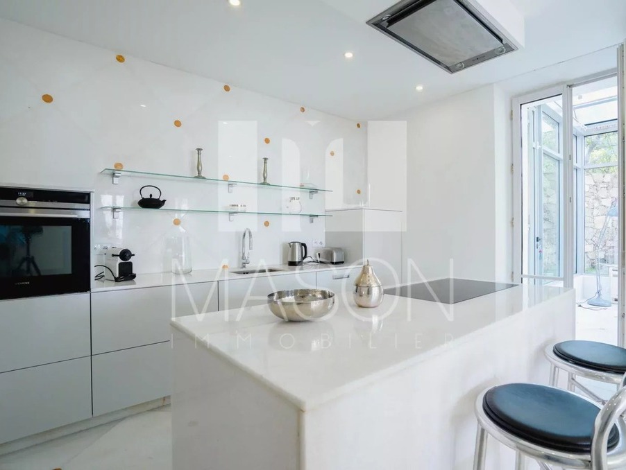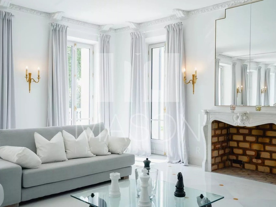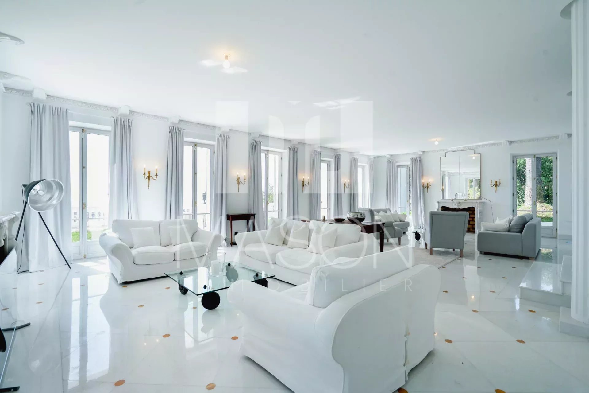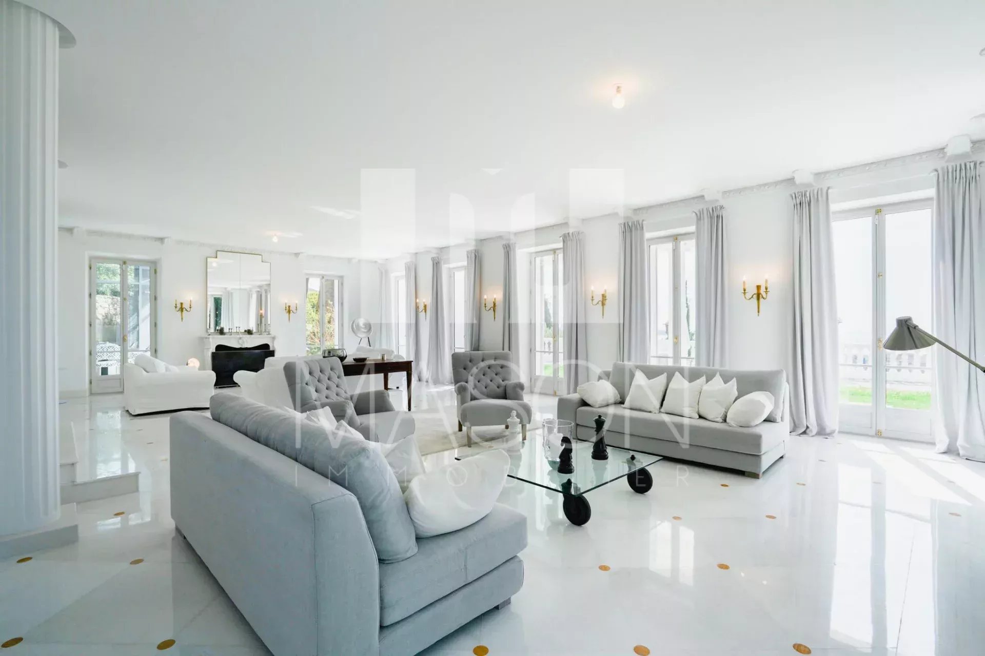 Exceptionnelle Villa Belle Epoque, tout juste rénovée avec des finitions du plus haut niveau. La Villa Reale est située à Golf Juan entre Cannes et le Cap d'Antibes. Depuis ses 7 suites vous pourrez profiter d'une magnifique vue sur la mer grâce à son exposition plein sud. La maison principale de 4 étages avec ascenseur offre un grand séjour ouvrant sur la terrasse panoramique extérieure et une cuisine moderne ainsi qu'une salle à manger dans la belle véranda. Aux deux premiers étages se trouvent 4 chambres avec leur propre salle de bain et au troisième étage une grande chambre avec deux lits doubles et une salle de bain. A l'extérieur, un jardin en restanques avec une grande piscine chauffée et un parking intérieur pour au moins 6 voitures.