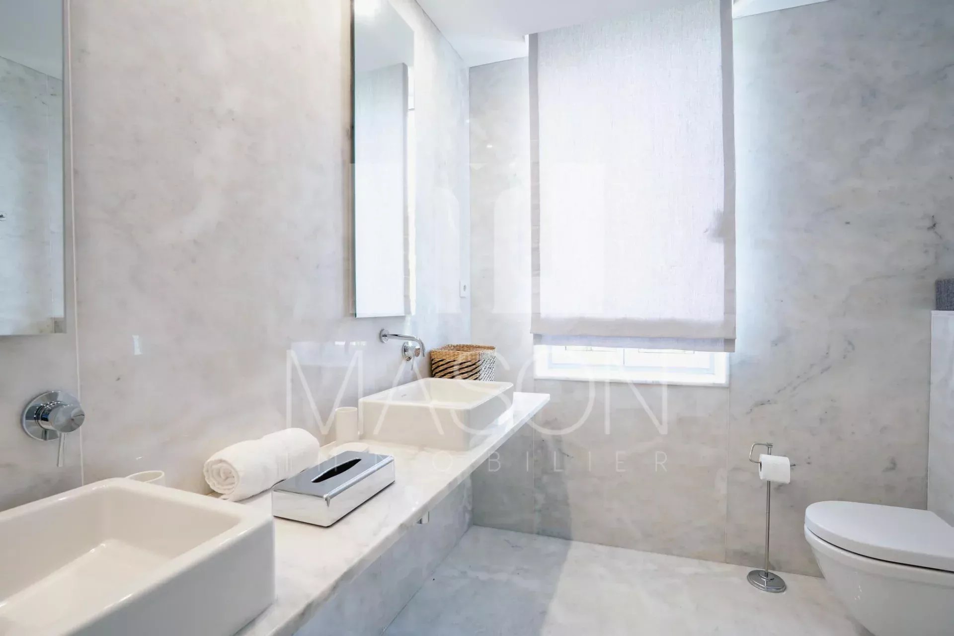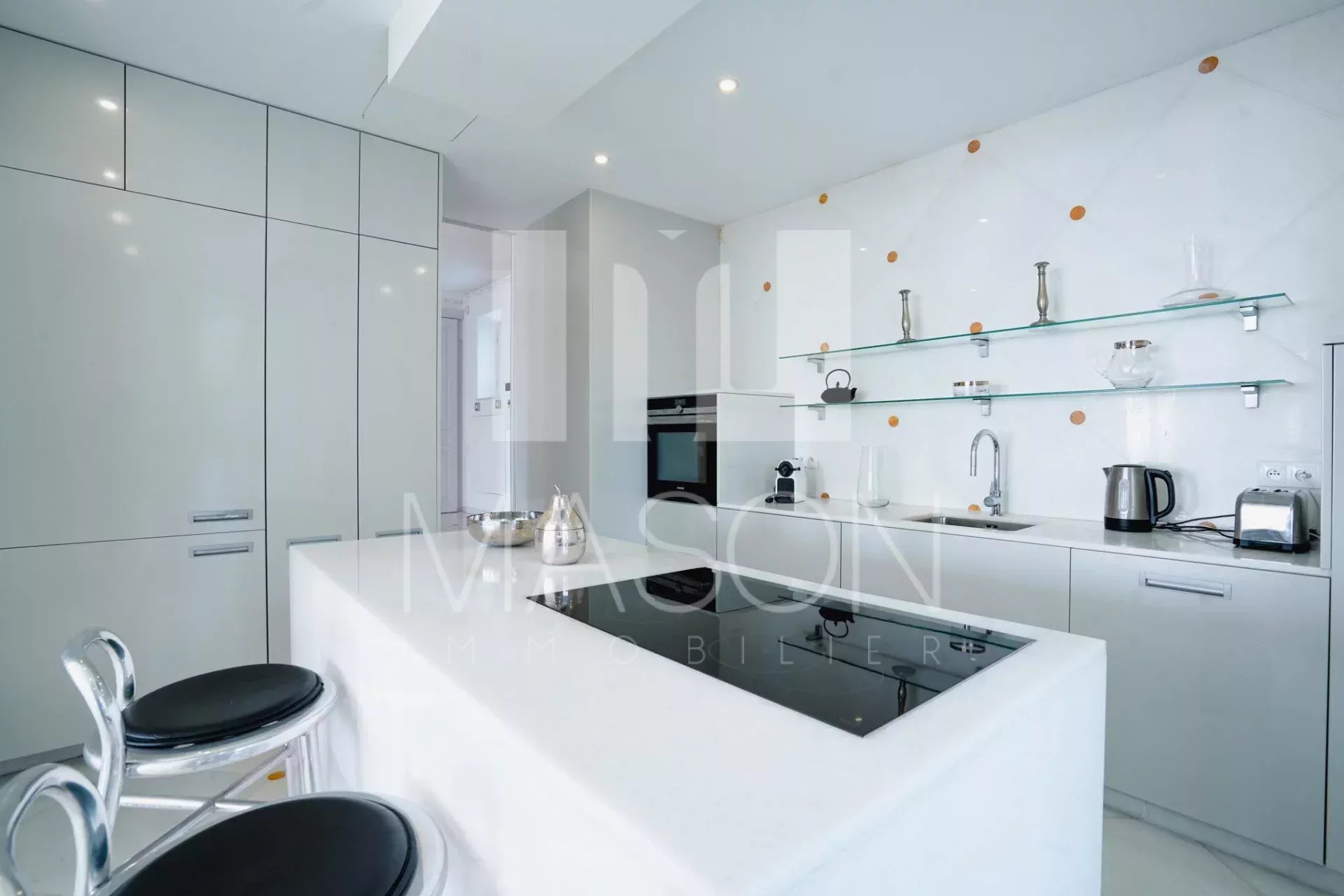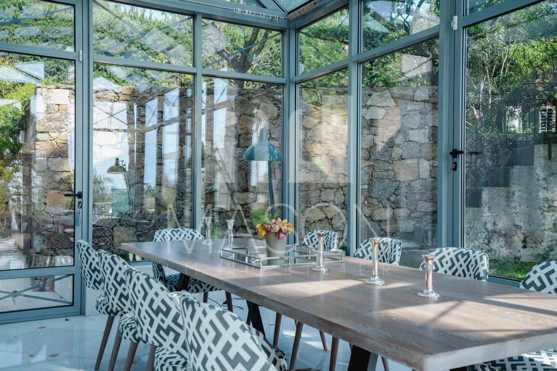 Situé dans le quartier du Cap d'Antibes, à proximité de l'église Notre-Dame de la Garoupe, cette magnifique villa e Villa Pied Dans L'eau est decorée en style bateau.