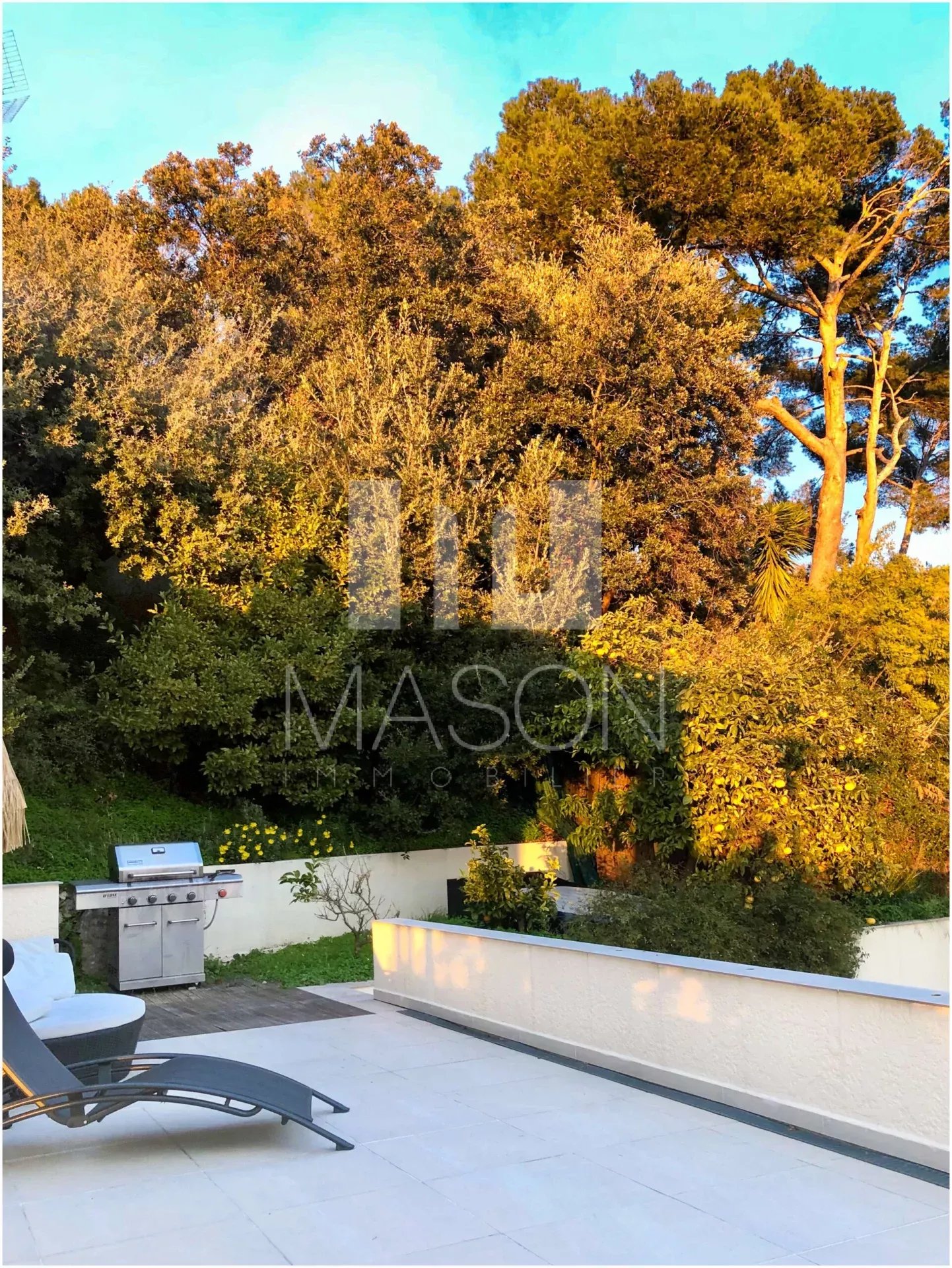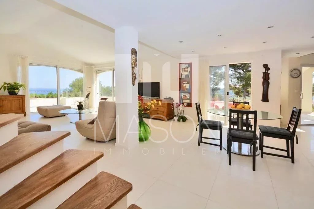 Nichée dans un écrin de verdure, cette magnifique villa climatisée de 211 m² de 4 chambres vous bercera aux chants des cigales et vous seduira avec sa vue époustouflante sur le Cap d’Antibes.