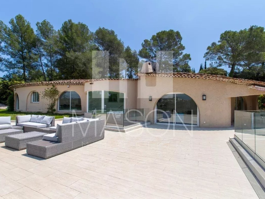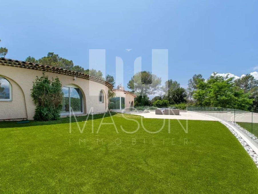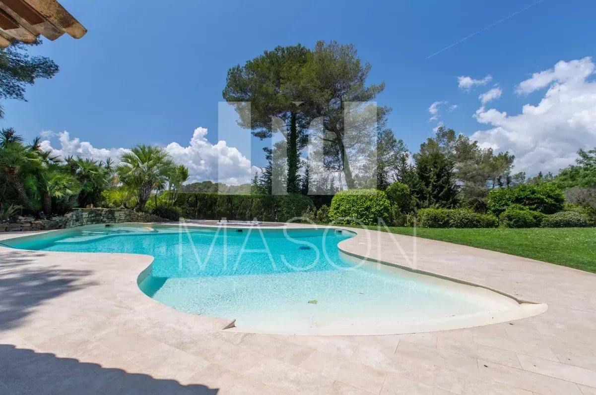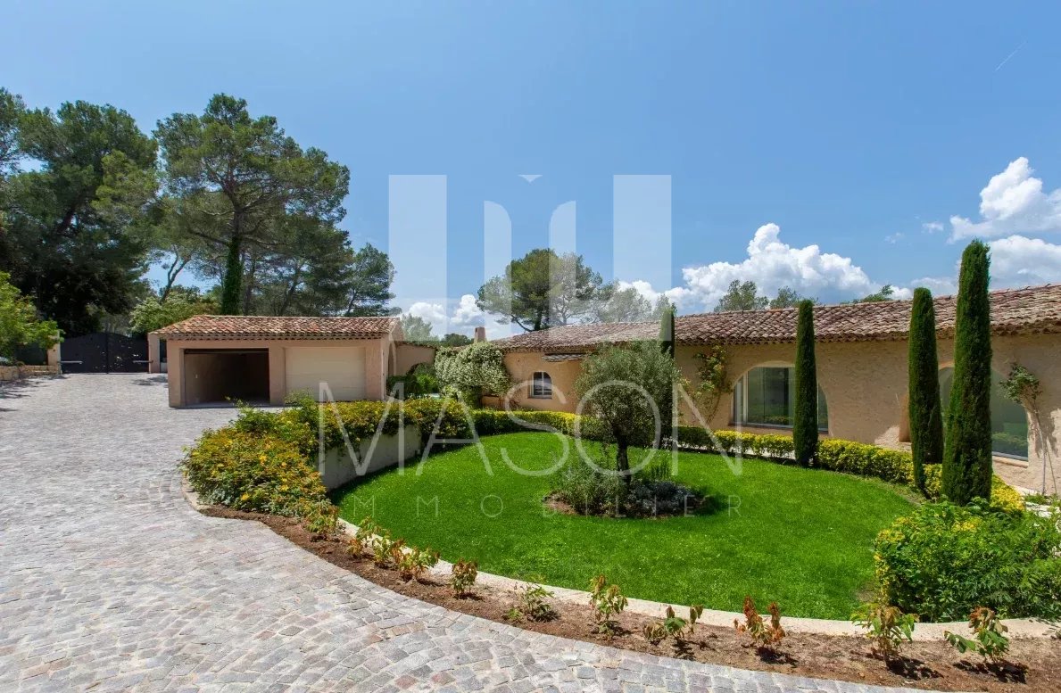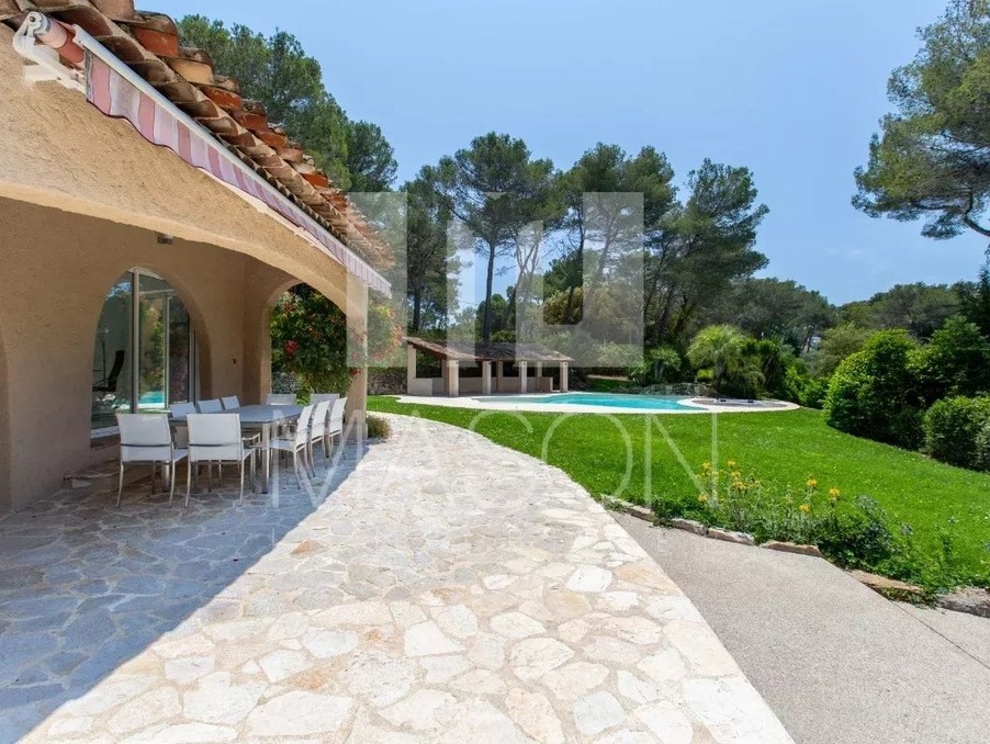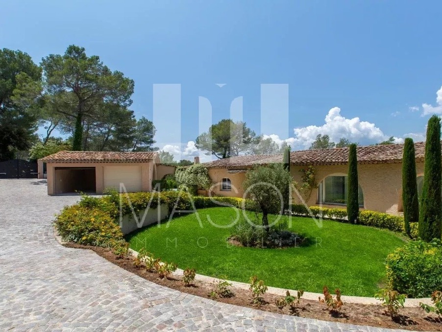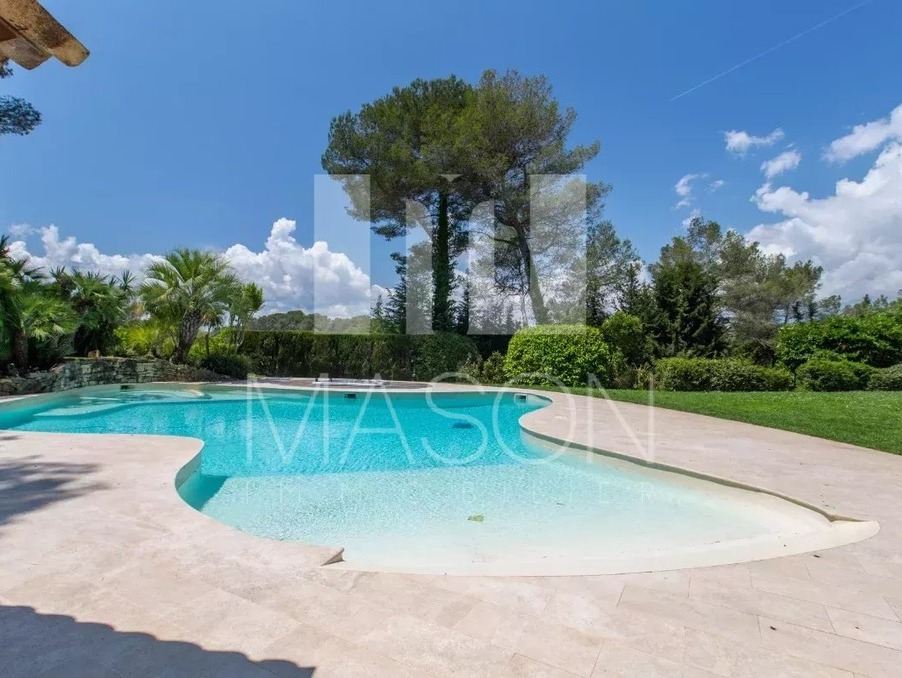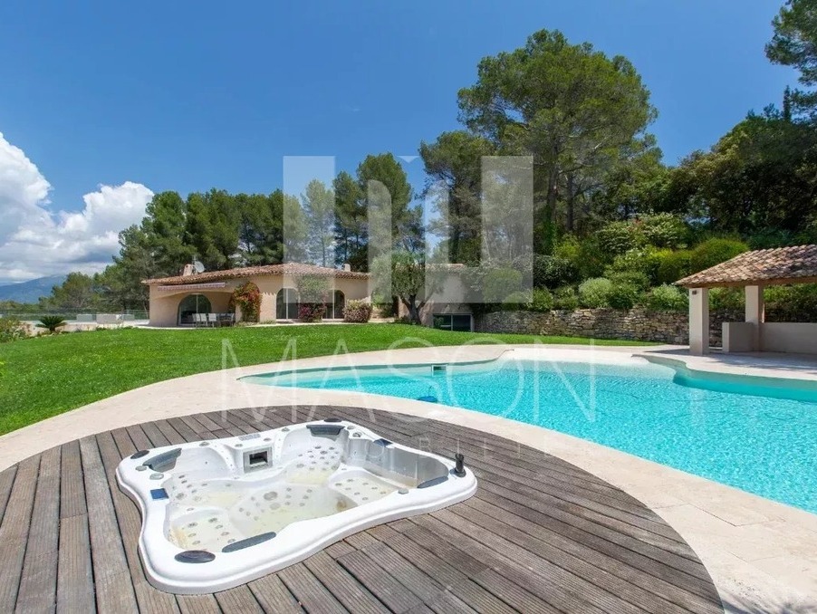 MOUANS SARTOUX : Située dans un domaine résidentiel de grande qualité, à moins de dix minutes en voiture de toutes les commodités, somptueuse propriété de 540 m² bâtie en 1970 au coeur d'un parc arboré de plus d'un hectare, avec grande piscine et pool-house, Jacuzzi, double garage et nombreux stationnements extérieurs.