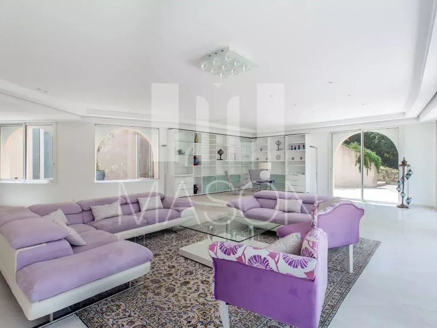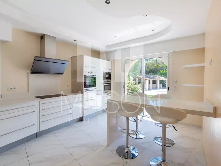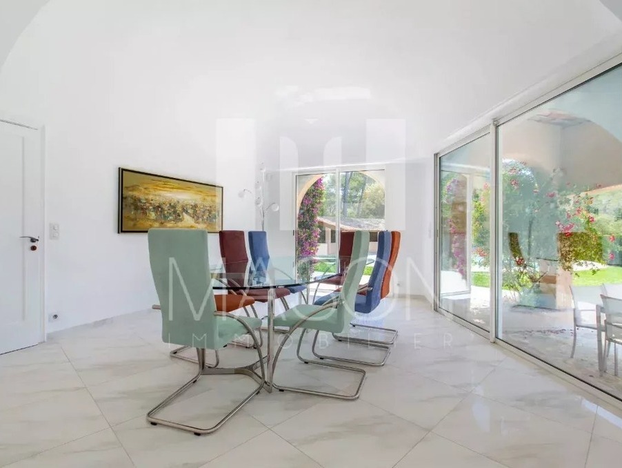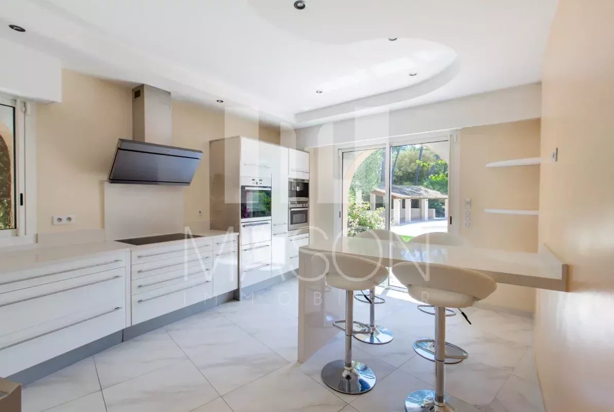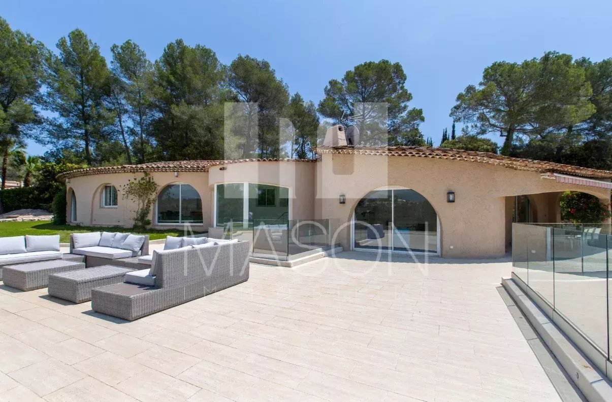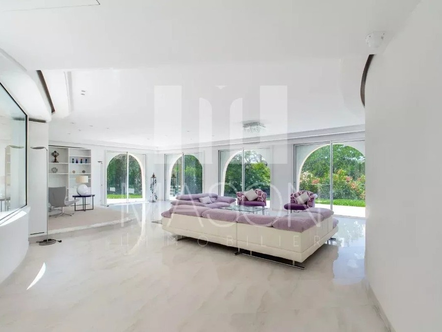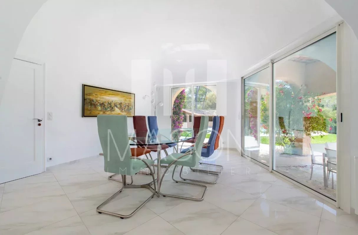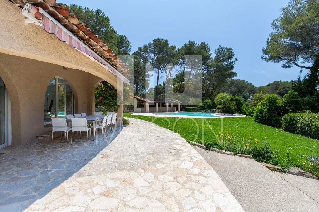 MOUANS SARTOUX : Située dans un domaine résidentiel de grande qualité, à moins de dix minutes en voiture de toutes les commodités, somptueuse propriété de 540 m² bâtie en 1970 au coeur d'un parc arboré de plus d'un hectare, avec grande piscine et pool-house, Jacuzzi, double garage et nombreux stationnements extérieurs.